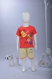 Kids' Two-Piece Graffiti Graphic T-Shirt and Shorts Set - Red / 22