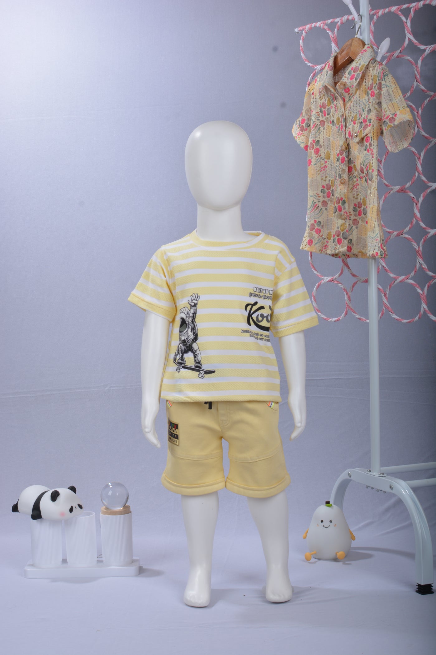 Little Explorer "Space Skate" Striped Tee and Coordinated Shorts Set - Yellow / 18