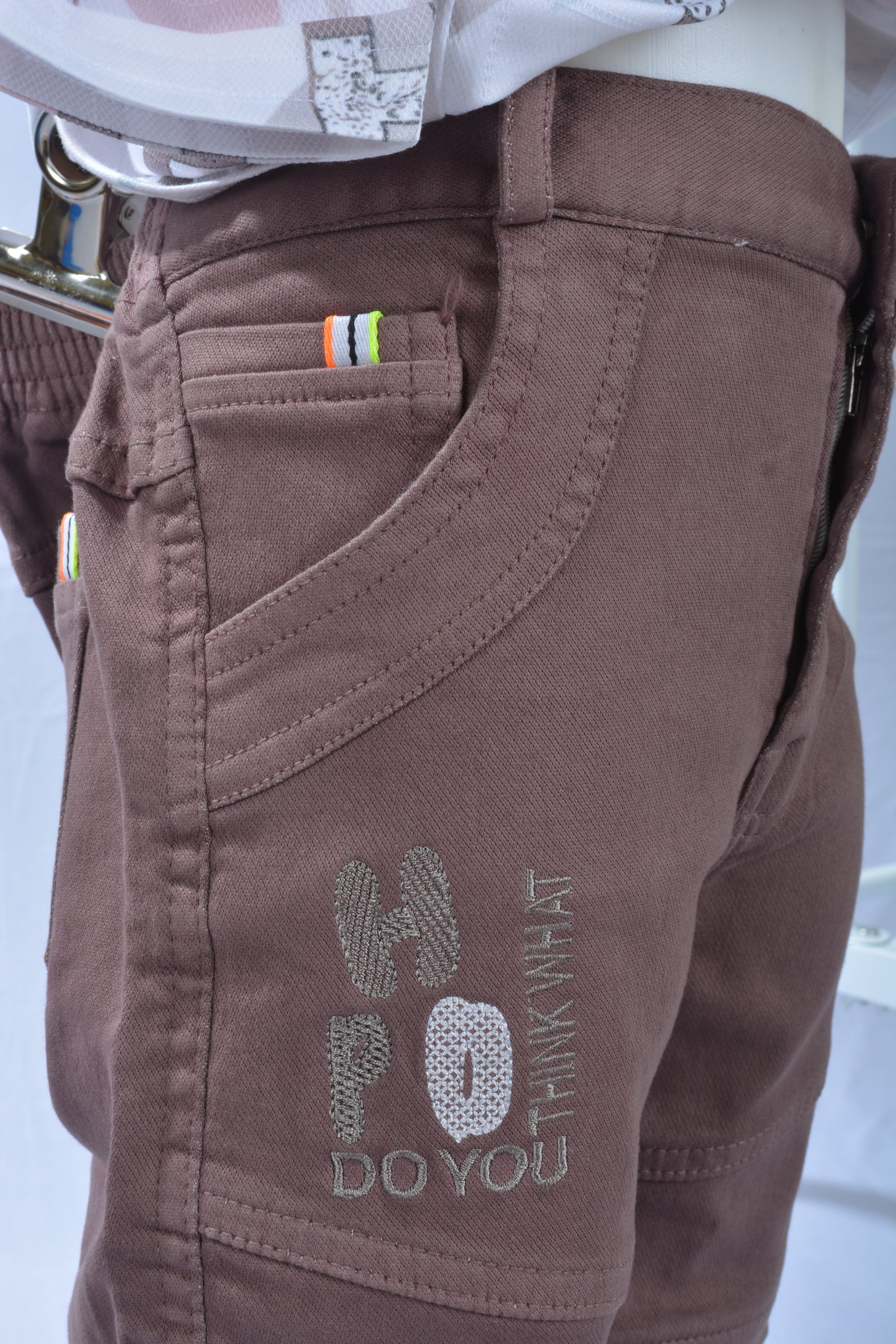 Trendy Cargo Pants: Stretchy peach bottoms with side pockets—both stylish and practical.