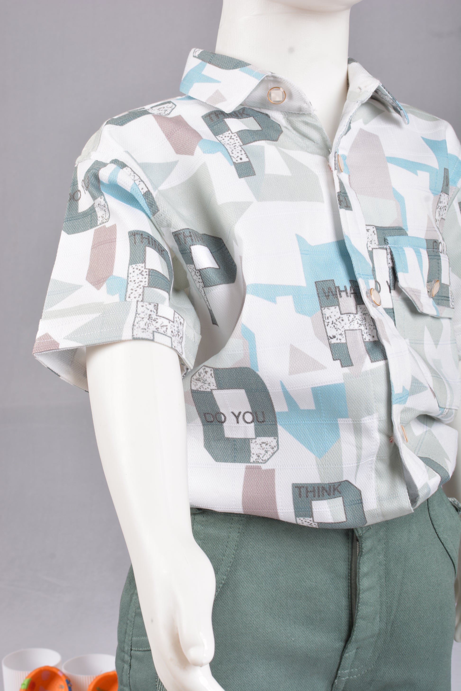 JUSTMAAMA Boy's Abstract Print Shirt Set Textured Shorts | Soft Cotton Blend Half Sleeve Cargo Pocket 2-Piece Summer Outfit | Regular Fit