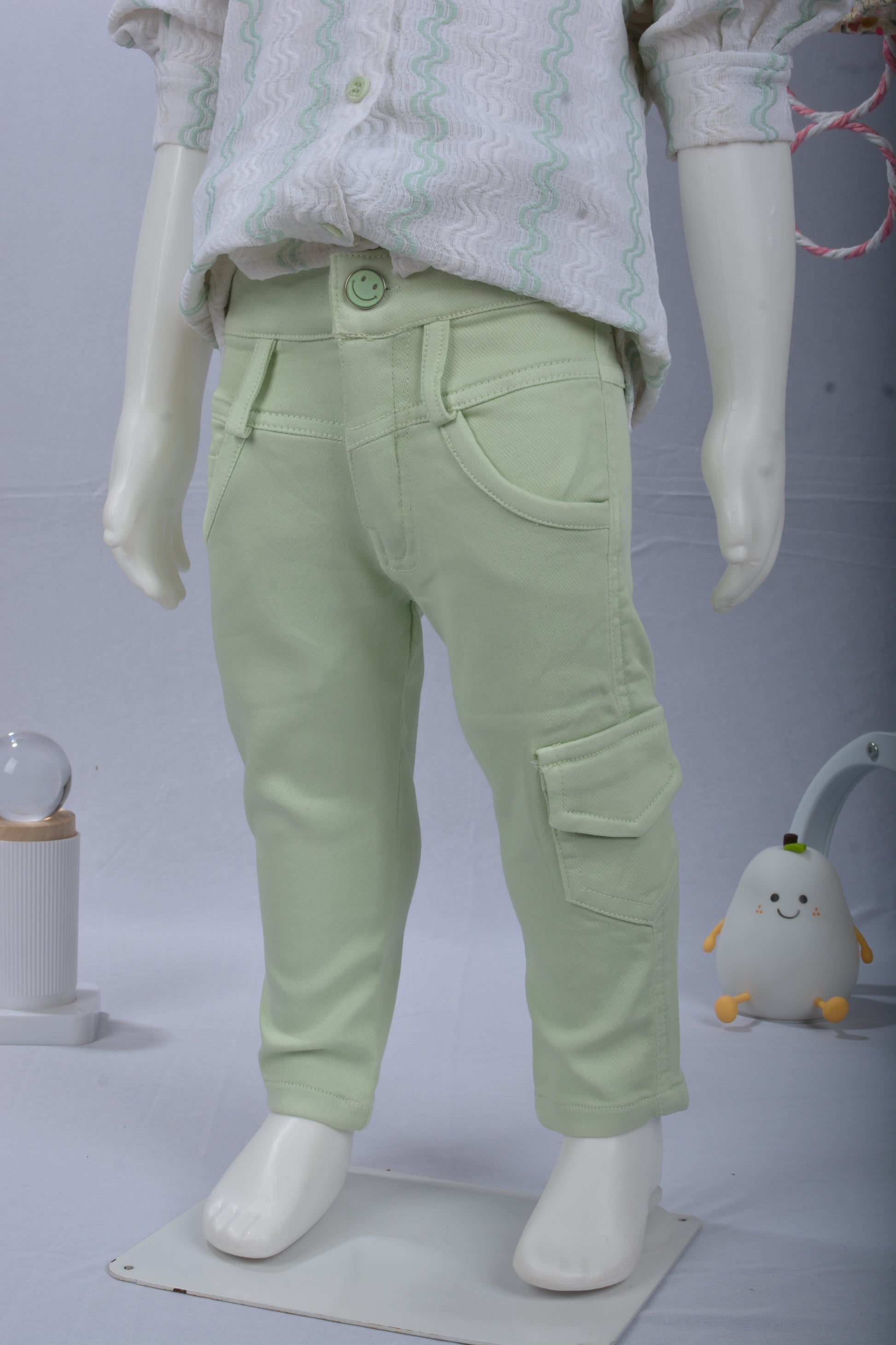 Justmaama Girls’ Printed Collared Top with Puff Sleeves and Functional Cargo Pants | Soft & Comfortable Clothing Set
