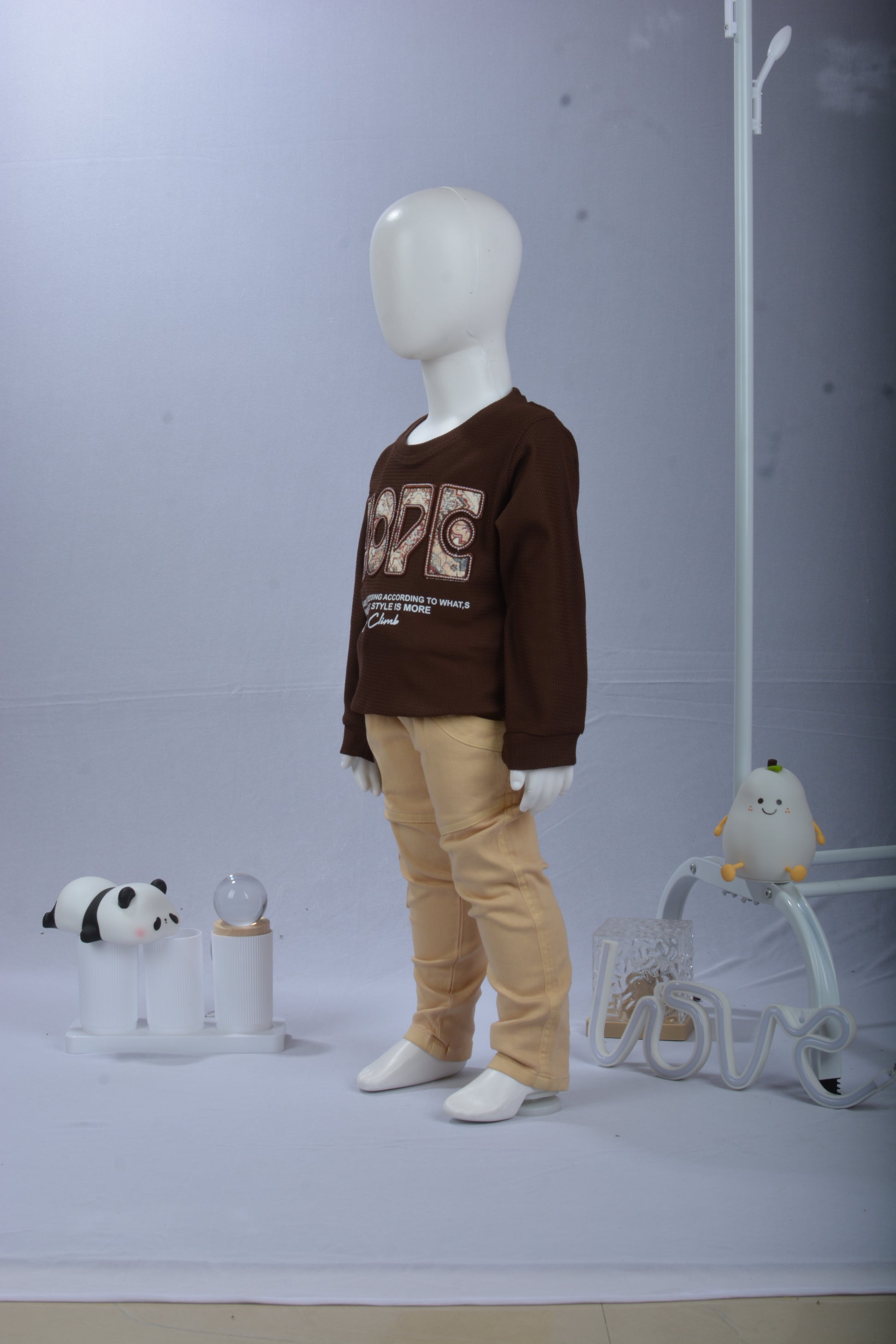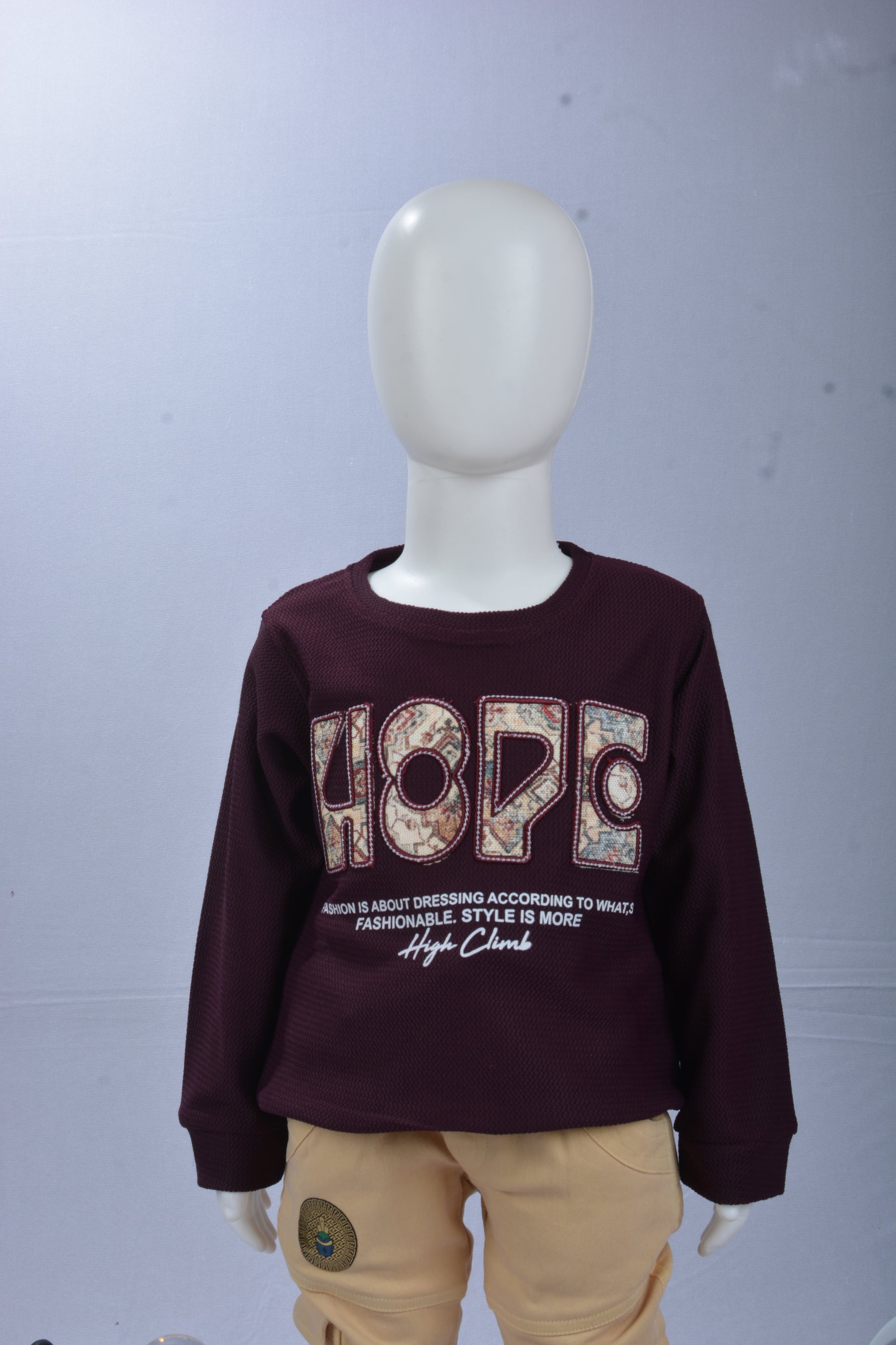 Keep your little one warm, comfy, and stylish with the Justmaama 2-Piece Waffle Knit Sweatshirt and Cargo Jogger Set. The soft waffle-texture pullover features a bold “HOPE” patchwork graphic, offering cozy warmth and a trendy look for cooler days. It pairs perfectly with the khaki cargo joggers, designed with multiple pockets, a secure elastic waistband, and an adjustable drawstring for the perfect fit. Made for active kids, the joggers have a tapered, easy-to-move design with elastic ankle cuffs. Ideal for school, outings, travel, or everyday play, this durable and easy-care set is a must-have for autumn, winter, and spring.