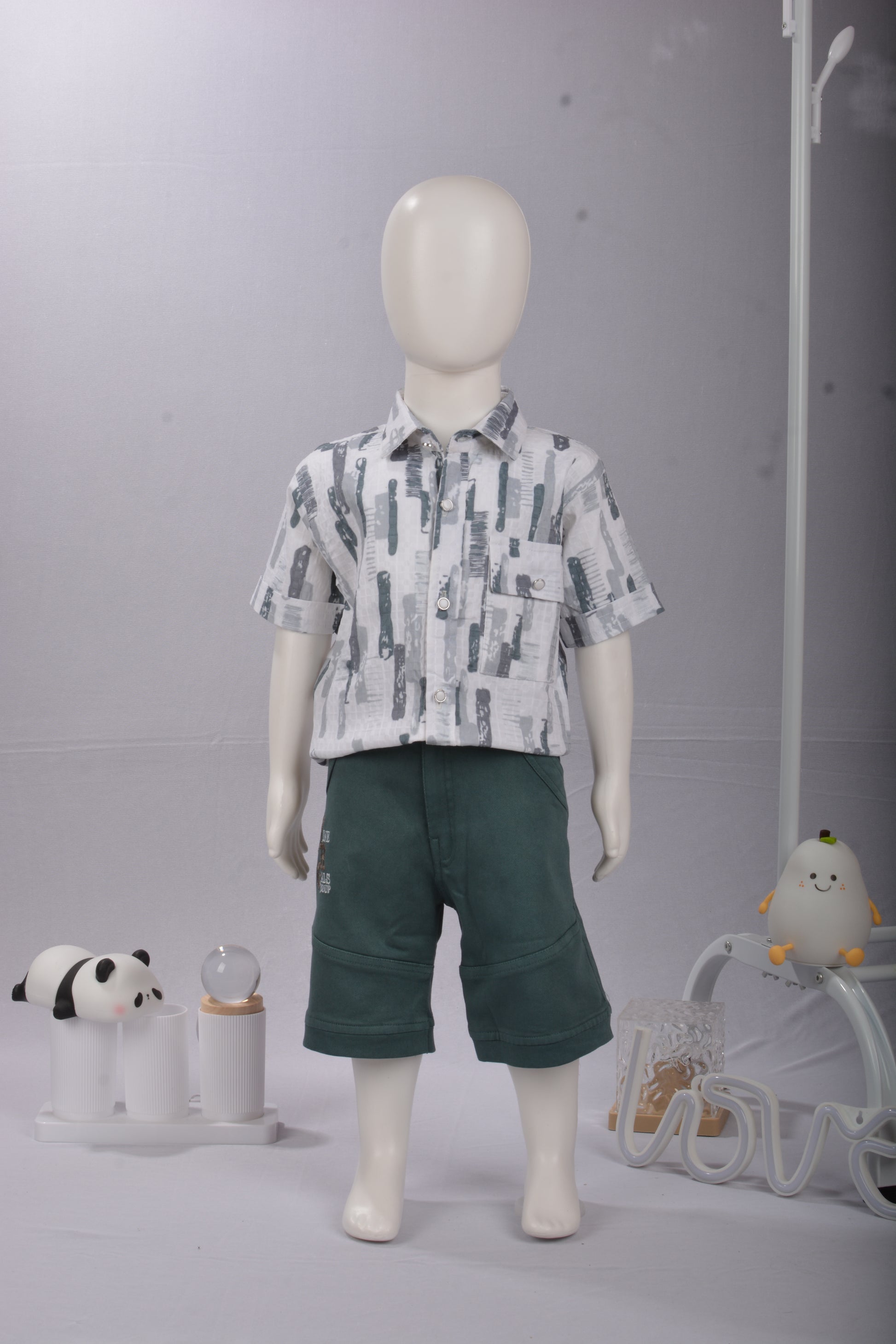 Give your little one a stylish and comfortable look with the Justmaama Boys' Abstract Print Shirt & Shorts Set. The lightweight button-down shirt features a modern abstract pattern that feels cool and breathable for warm days. It pairs perfectly with durable cotton twill cargo shorts designed for active play, complete with a zipper fly, button closure, and handy pockets. This ready-to-wear coordinated set makes dressing easy and offers great mix-and-match options for everyday use. Ideal for playdates, outings, vacations, and casual summer wear, this outfit delivers both comfort and modern style in one smart package.